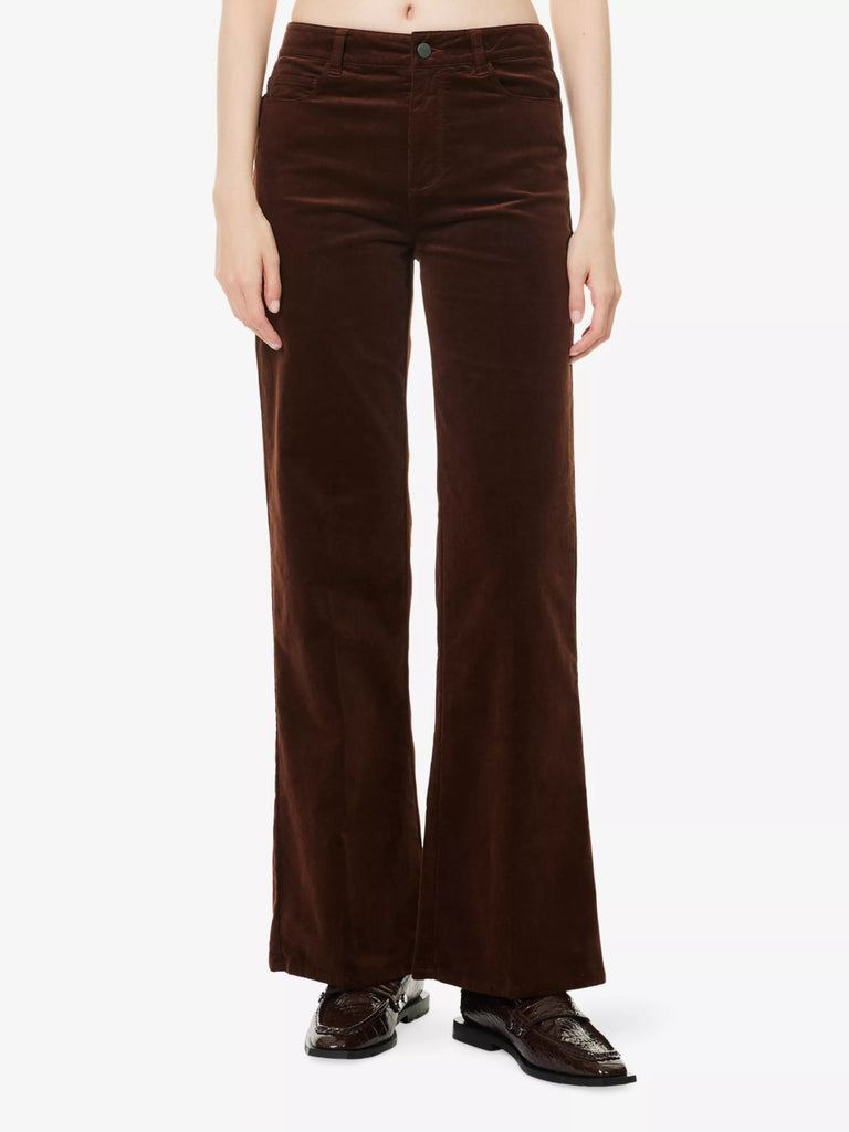 This 90s-inspired sleek wide leg is designed with a high-rise and a flattering bow leg silhouette. This pair is crafted from our luxuriously soft stretch cotton corduroy fabric in a dark brown with welt pockets. Our elevated corduroy is made with the perfect amount of stretch for the most comfortable fit from morning to moonlight.
