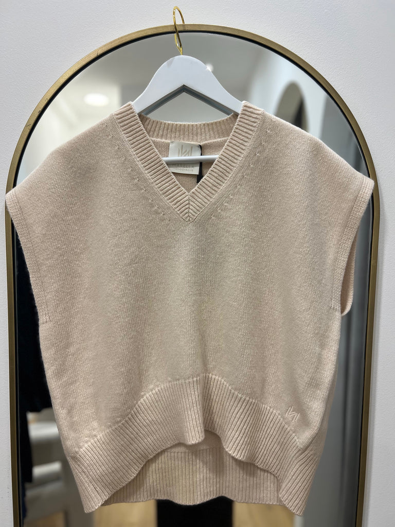 An elevated layering piece designed for effortless refinement. Crafted from 100% virgin wool, this sleeveless knit offers a soft, luxurious hand-feel and a relaxed, modern silhouette. Perfect for transitional styling ir adding texture to cold weather looks.