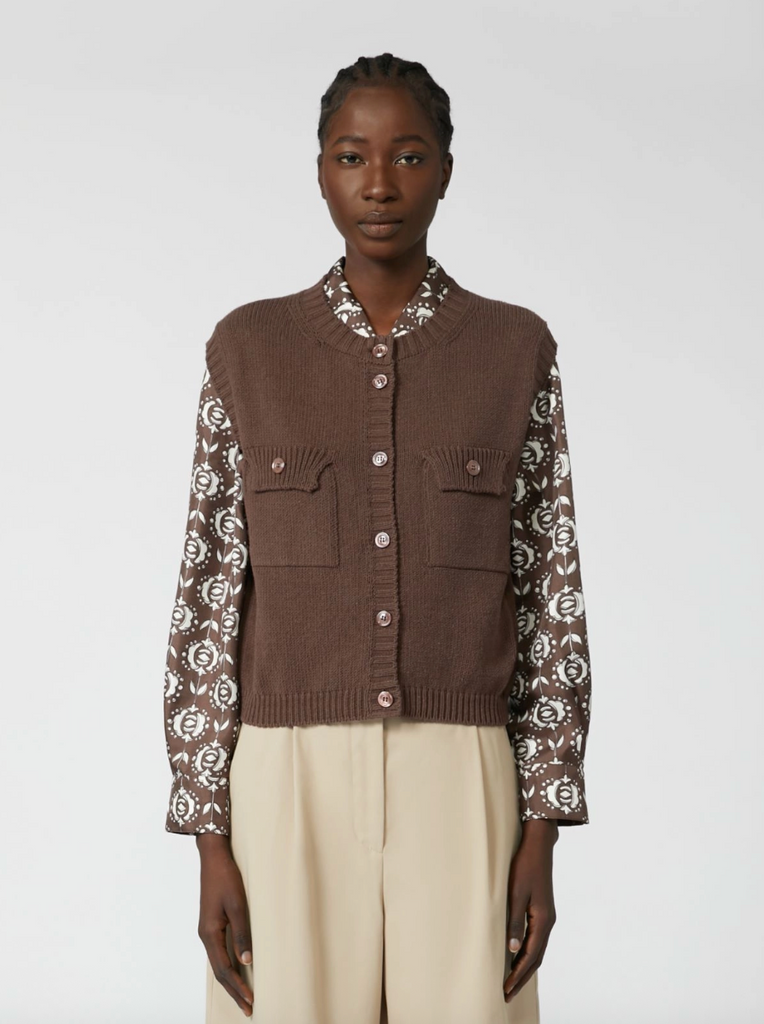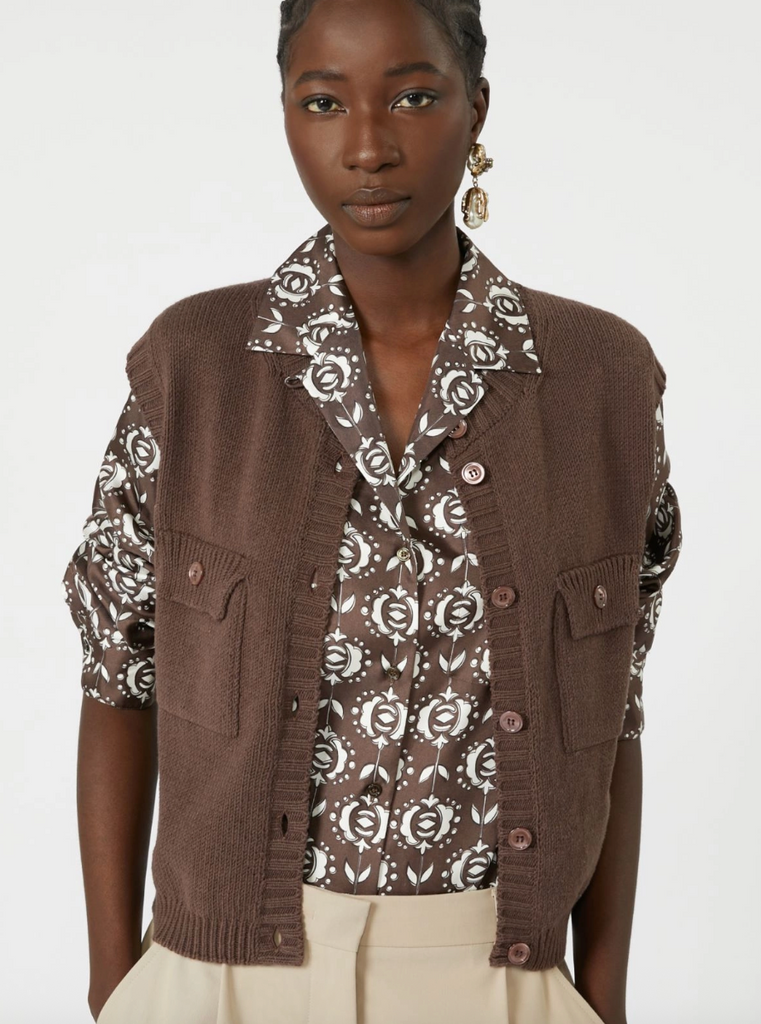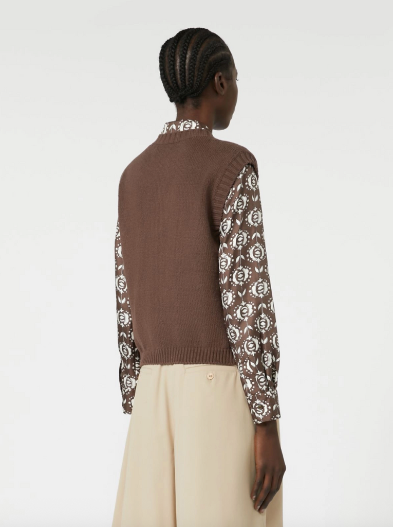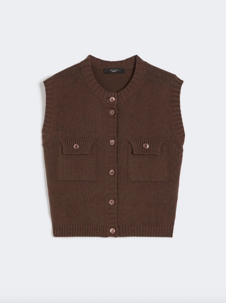 This versatile gilet from Weekend Max Mara is knitted in a soft cotton-blend yarn, offering a refined layering piece with subtle utility-inspired details. Designed with a regular fit and a clean round neckline, it balances casual ease with elevated texture.