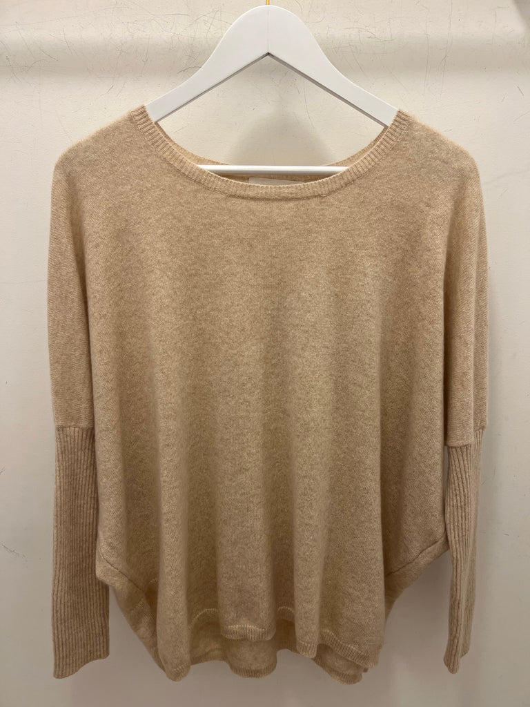 The Agnes Poncho cashmere has a slightly loose fit, accented with side slits and long ribbed sleeves.