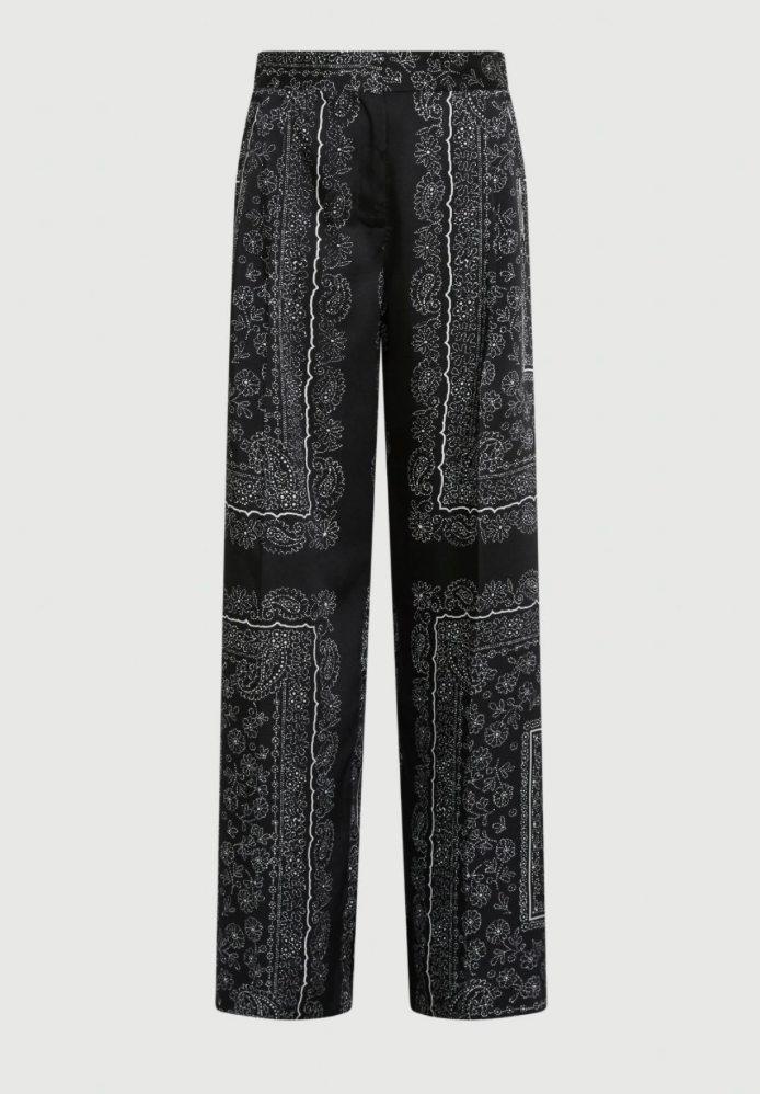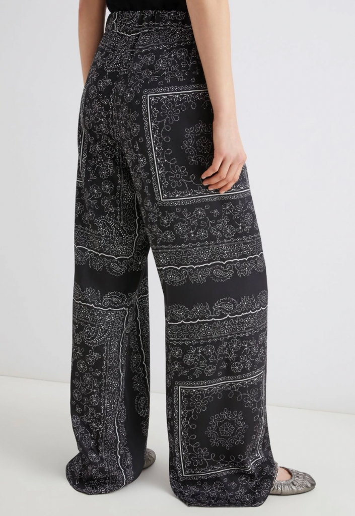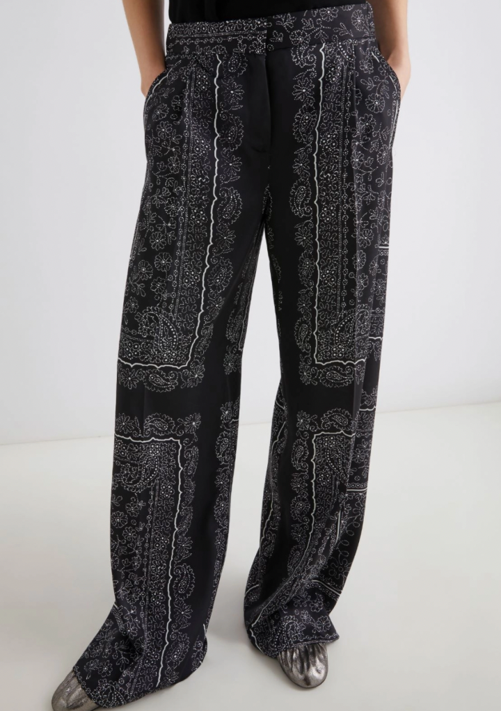 Contemporary elegance meets effortless wear. The Pleated Trousers by Marella are designed with a fluid wide leg and intricate bandana-inspired print, combining relaxed tailoring with refined detail. Crafted from a soft stretch twill with a mid-rise fit, they offer comfort and sophistication in equal measure.