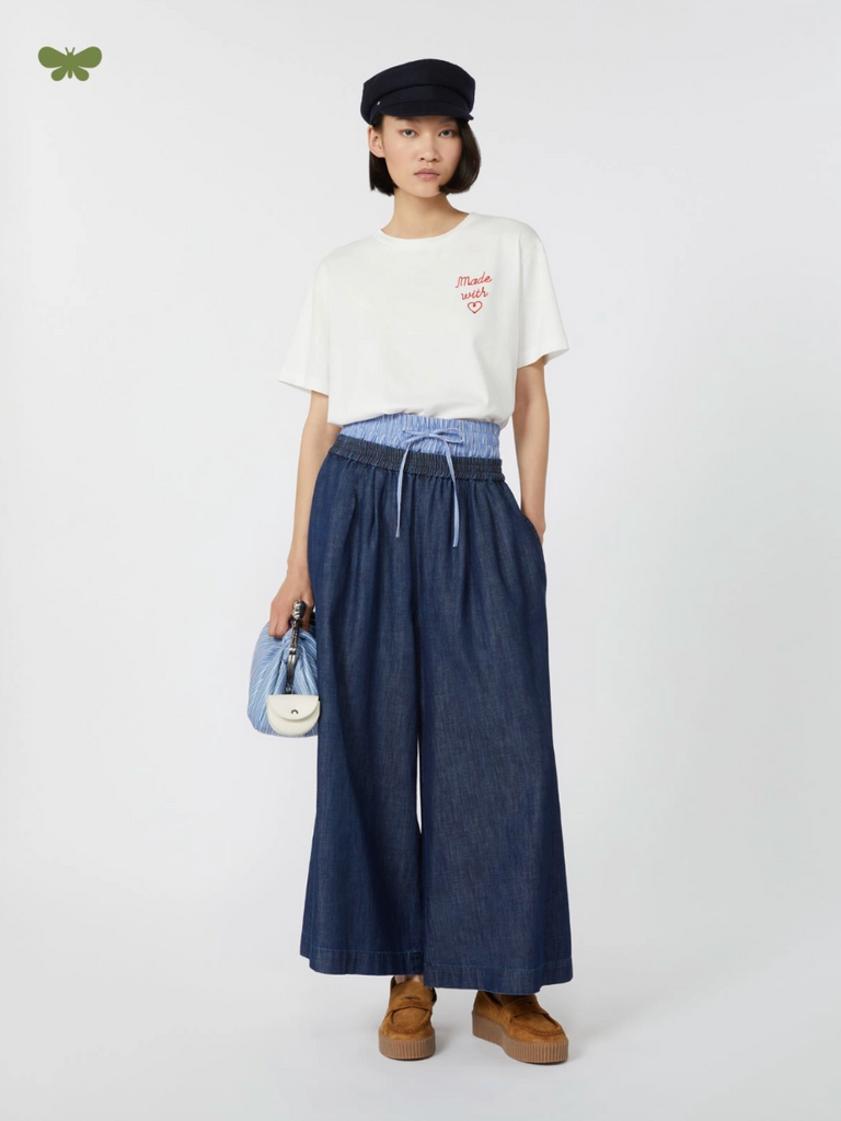 Relaxed yet refined, these wide-leg jeans from Weekend Max Mara are cut from garment-dyed pure cotton denim with a cropped, above-ankle silhouette. A versatile style that balances ease and structure, perfect for modern everyday dressing.