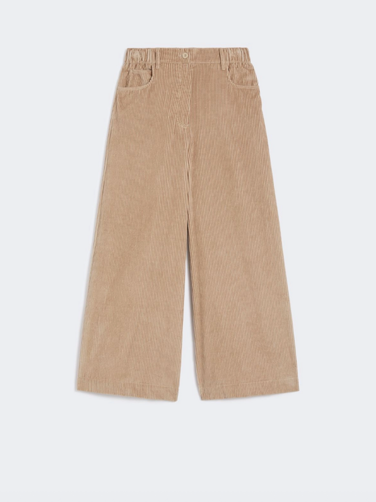 A modern take on classic corduroy, these cropped trousers are cut from soft nine-wale cotton velvet with a flattering wide leg. Designed with utility-inspired details, they balance comfort and polish, making them a versatile wardrobe staple.