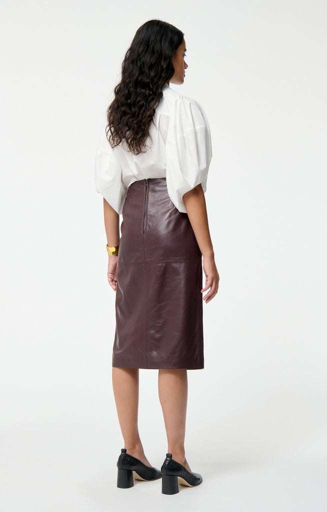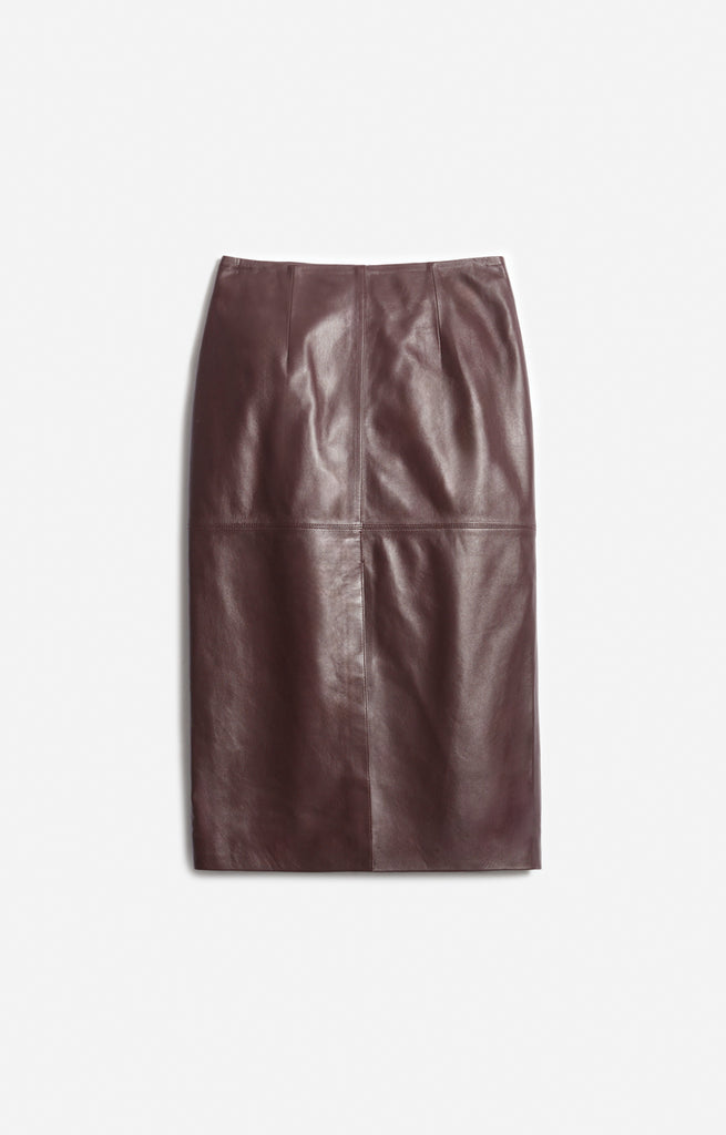 • Straight cut, knee-length leather skirt