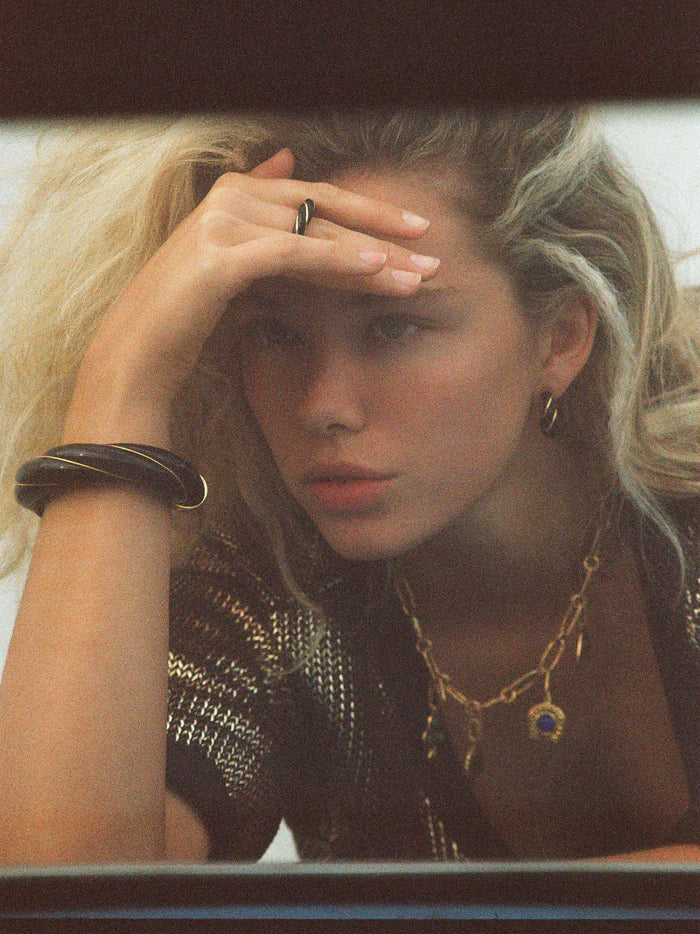 The Diana family is on board, with a brand-new series of rings and hoop earrings, delicately interlaced with gilded metal, in green, black and a delicate shade of ivory.
