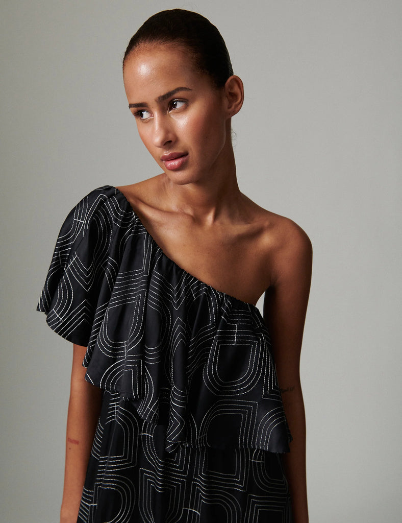 Soft, fluid drape with embroidered stitch detailing throughout