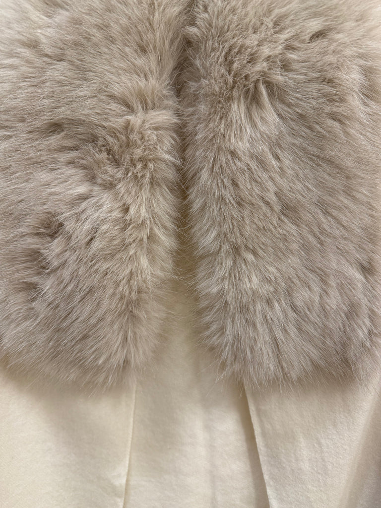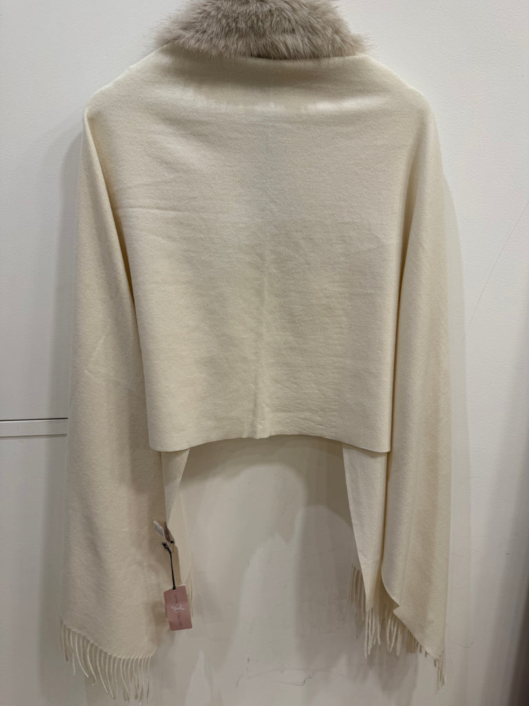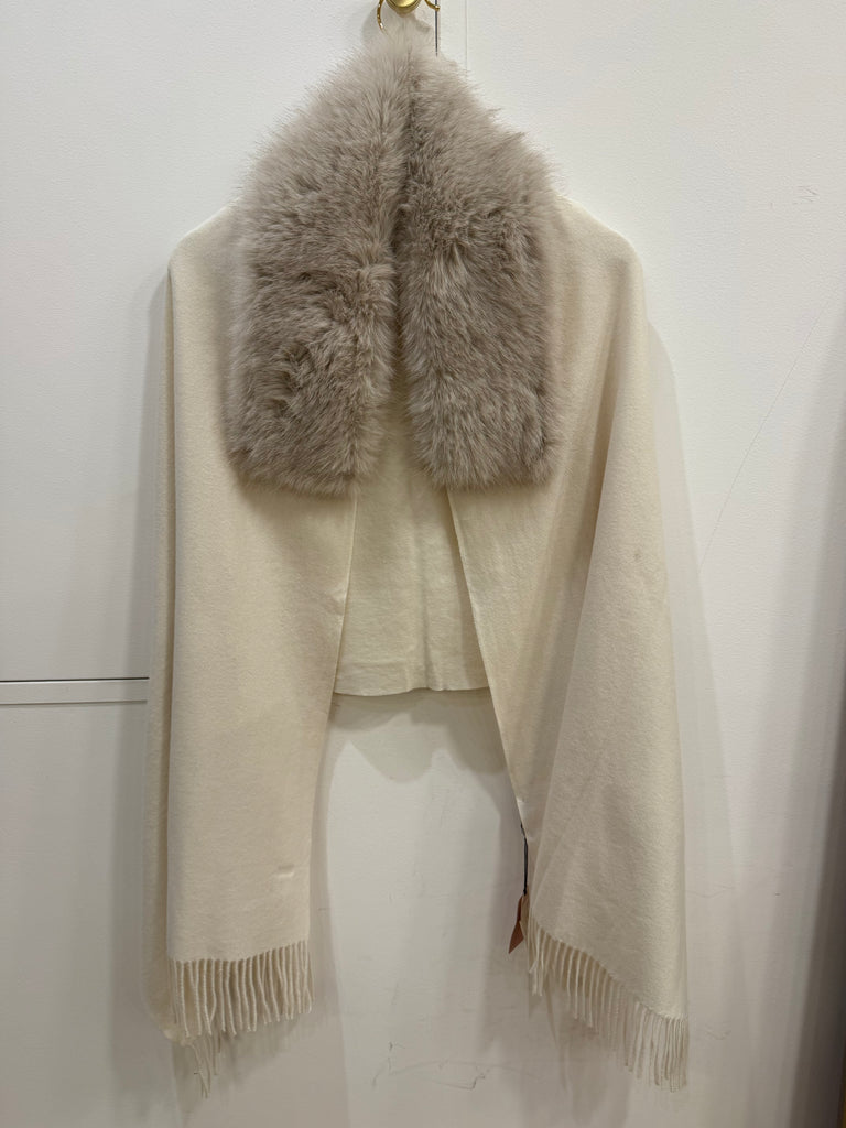 A chic layering piece for effortless elegance, the Nebbiolo Shawl is crafted from a soft polyester-viscose blend in a warm cream tone. Designed with a fluid drape and finished with faux fur collar, it offers both comfort and sophistication — perfect for transitional dressing or travel days.
