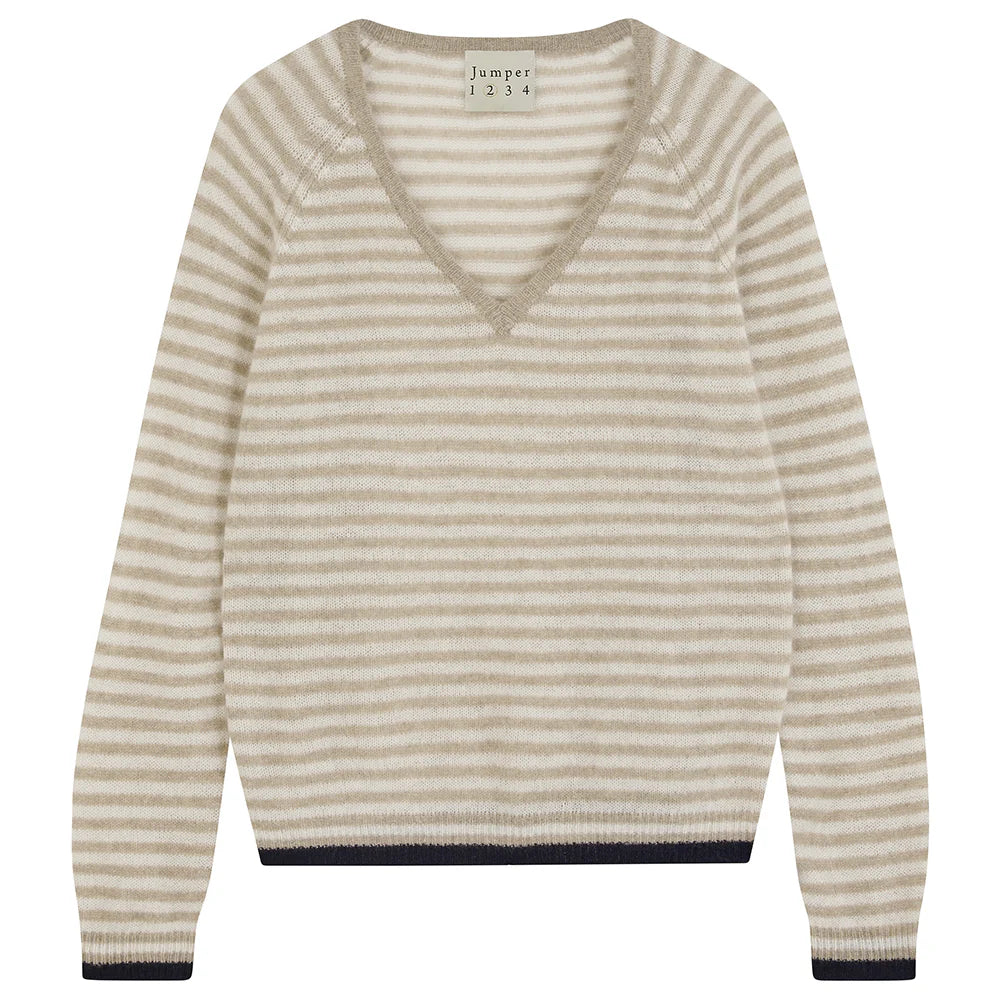 Jumper 1234 Tipped Little Stripe Vee in Light Brown