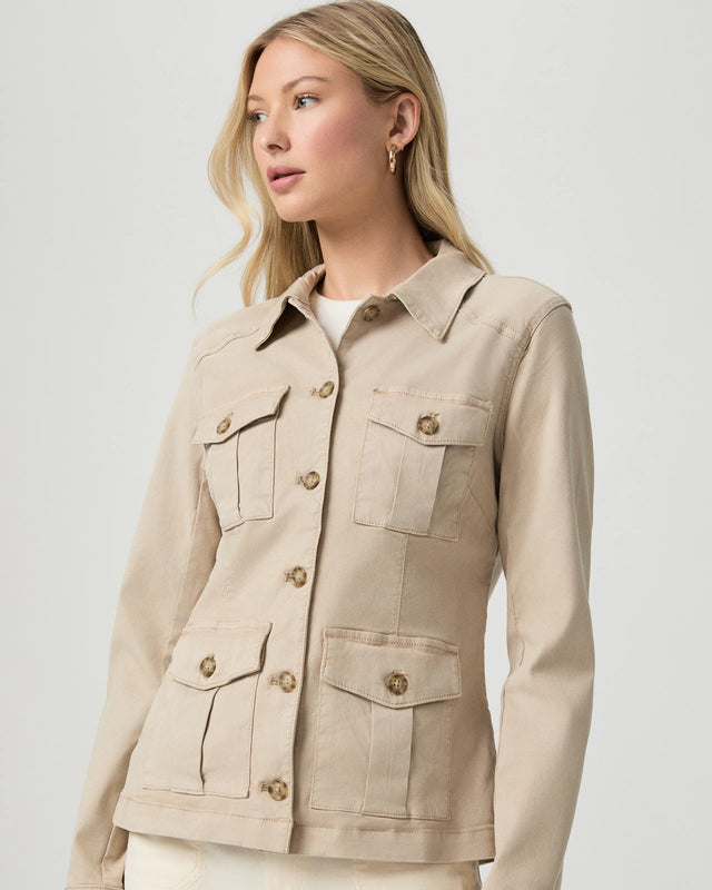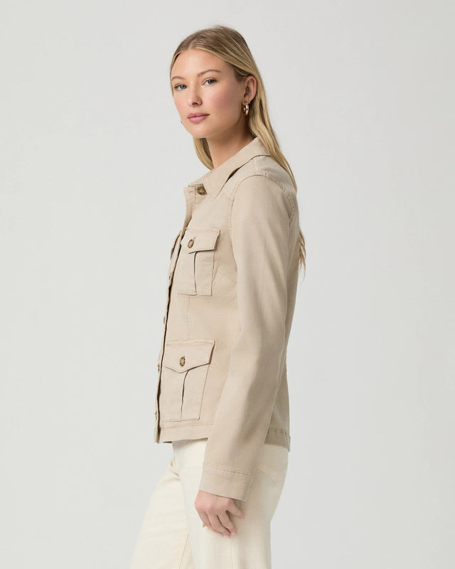 The Stacey Jacket by Paige is a refined everyday essential, crafted from soft stretch twill for a comfortable yet structured fit. Designed in a vintage-inspired sandy beige tone, it offers a relaxed silhouette with subtle tailoring that makes it easy to wear season after season.