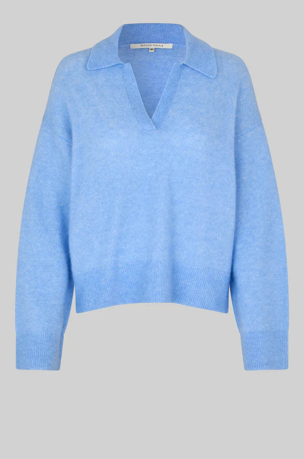 Soft, textured and effortlessly refined, the Bruuk Knit by Second Female is crafted from a luxurious mohair-blend yarn for a beautifully soft and airy feel. Designed with a relaxed silhouette, it features a soft collar neckline that adds a subtle, modern twist to a classic knit.