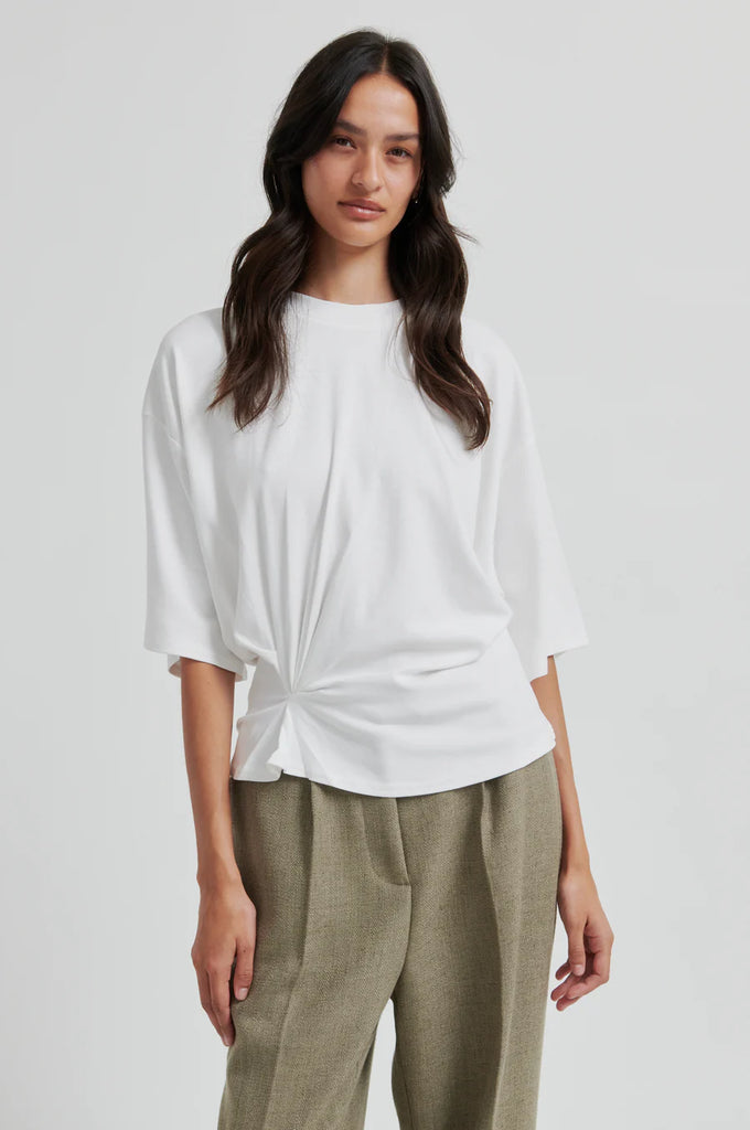 A modern wardrobe staple with a subtle design twist. The Missouri Tee by Second Female reimagines the classic white t-shirt with softly gathered detailing for a flattering, draped silhouette that feels effortless yet considered.
