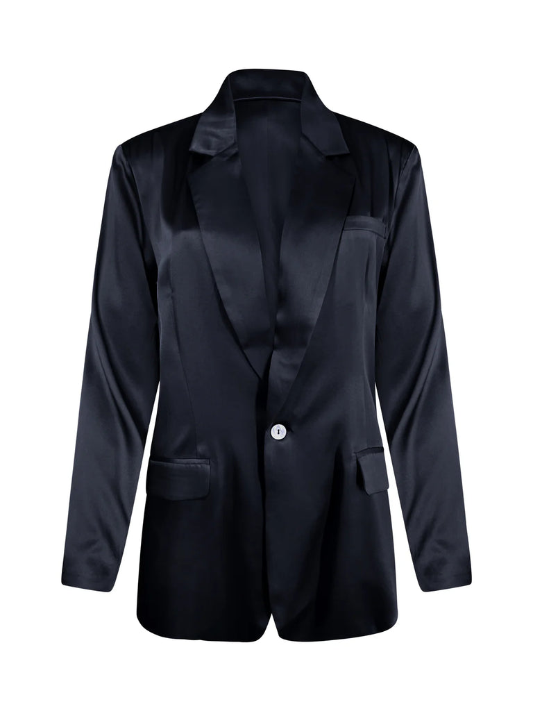 Sophisticated and sleek, the Sydney Theater Jacket is tailored in our signature stretch-silk with a subtle sheen for a polished finish. Designed with a relaxed longline silhouette, notched lapels, and a single-button front, it strikes the perfect balance between sharp tailoring and effortless drape. Ideal for layering over dresses, trousers, or evening looks, this jacket brings timeless versatility to any wardrobe.